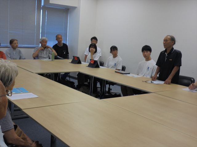 あいさつ運動の後に、生徒会執行部が保護司会の方々とどうすれば社会がよりよいものになるのかと話し合いました。